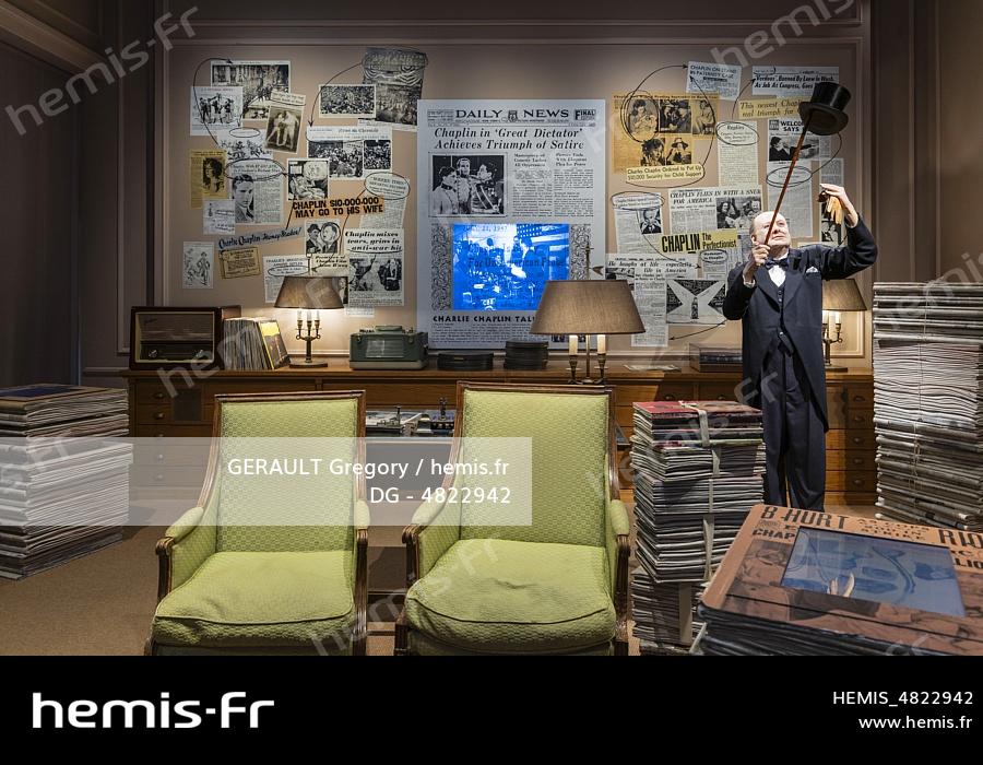 Switzerland, canton of Vaud, Corsier sur Vevey, Chaplin's World Museum at the Manoir de Ban, wax statue of Sir Winston Churchill