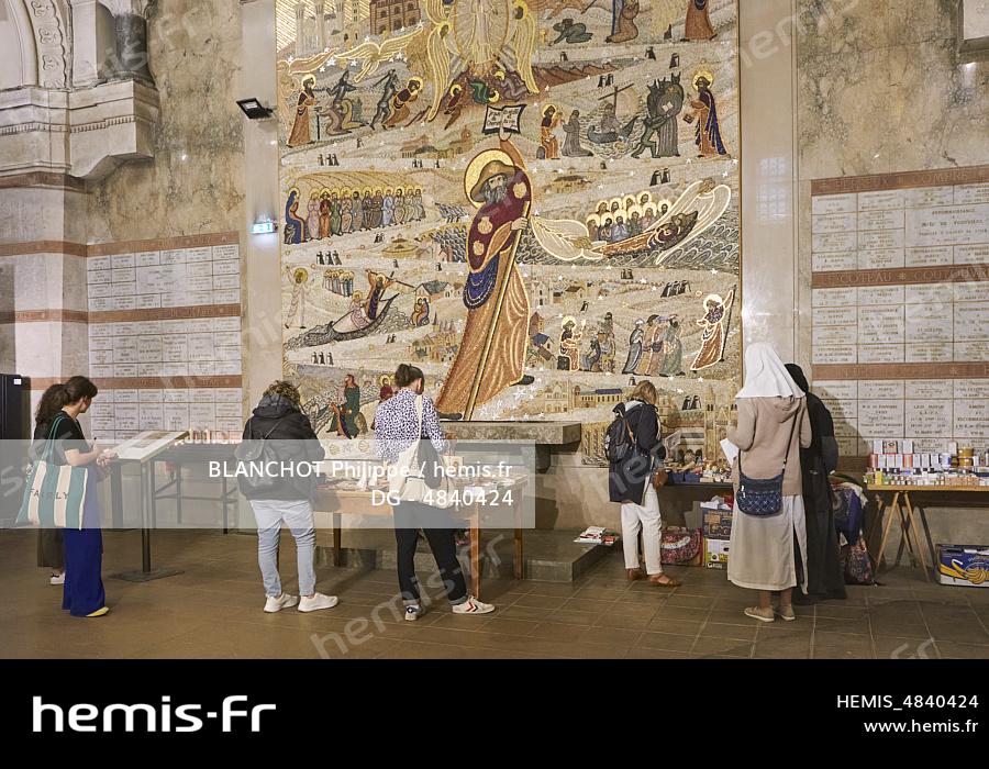 France, Rhone, Lyon, a historic district listed as a UNESCO World Heritage Site, Notre Dame de Fourviere basilica, the crypt of Fourviere identified as the lower church, the mosaic of Santiago de Compostela designed by Larissa Perekrestova from Odessa