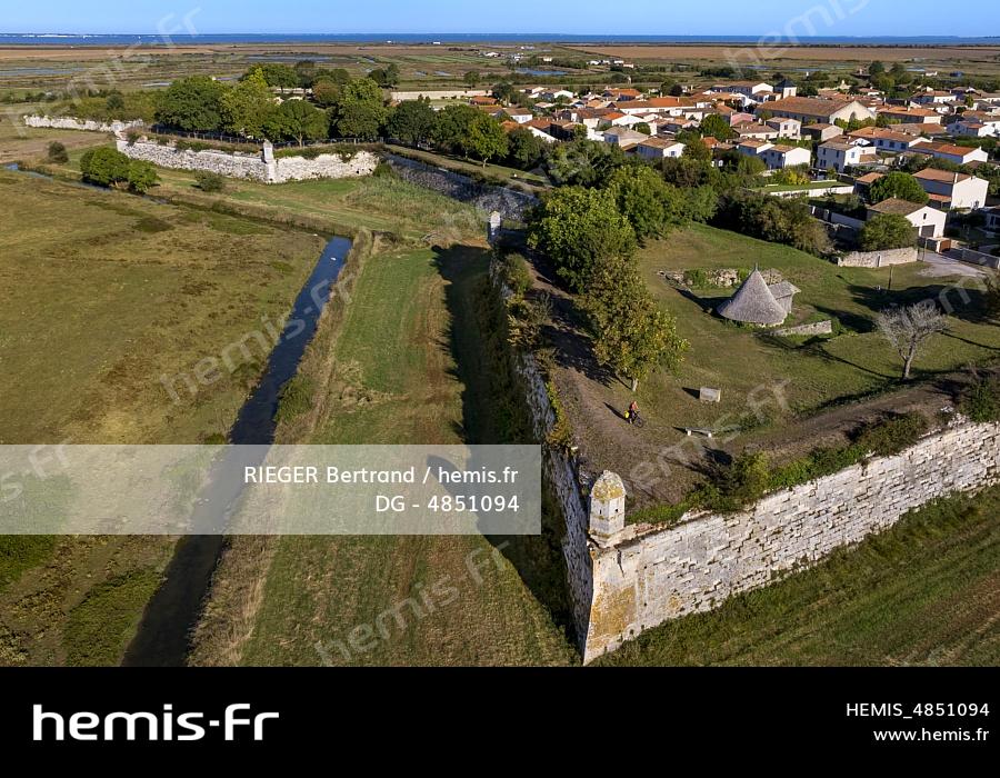 France, Charente-Maritime (17), Saintonge, Marennes-Hiers-Brouage, citadelle de Brouage, labellisé Les Plus Beaux Villages de France, les remparts batis de 1630 à 1640 sont munis d'échauguettes (vue aérienne)