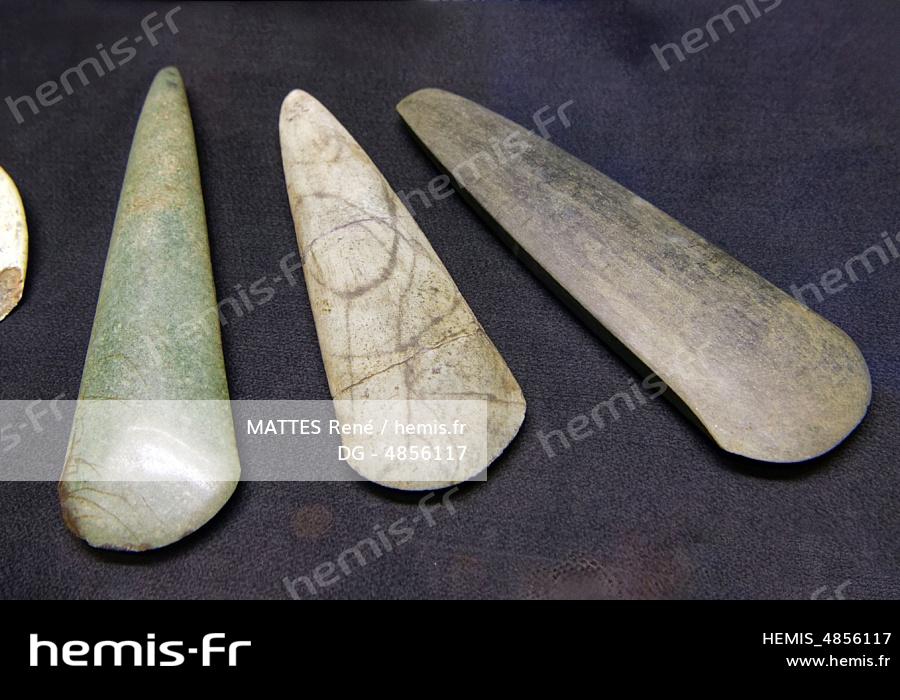 France, Morbihan (56), Carnac, Carnac prehistory museum, Polished Jade Axe Blades of Alpine Origin