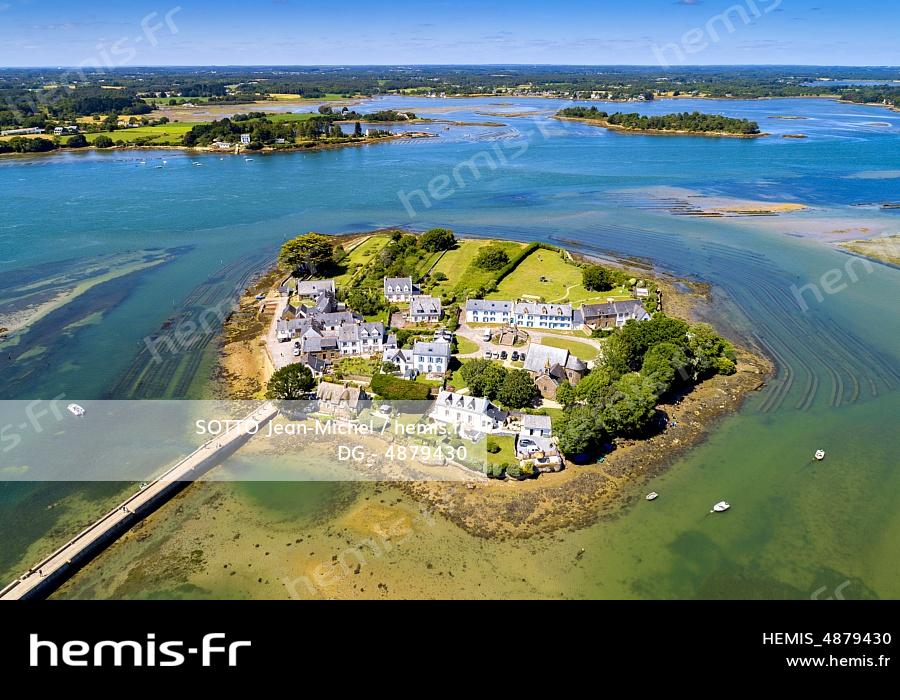 France, Morbihan (56), Ria d'Etel, Belz, l'île de Saint-Cado et les îles et îlots de la rivière d'Étel (vue aérienne)