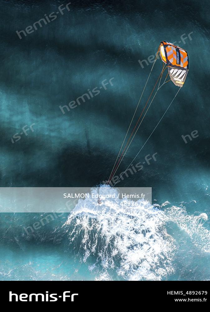 France, Charente Maritime, La Palmyre, surf site session on the wild coast, at sunset in summer (aerial view)
