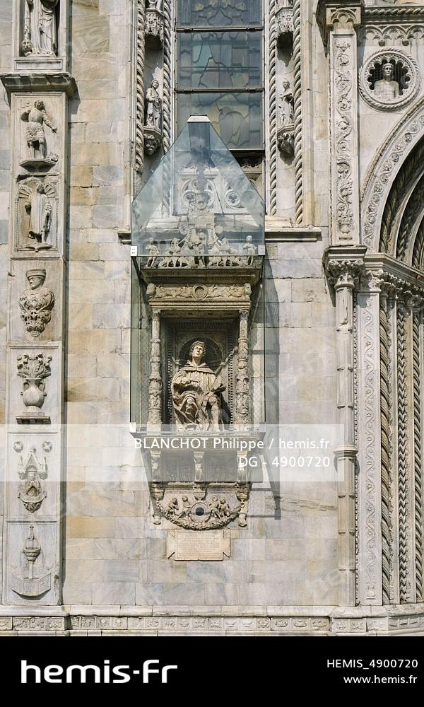 Italy, Lombardy, Lake Como, Como, Como Cathedral (Duomo di Como), Statue of Pliny the Elder