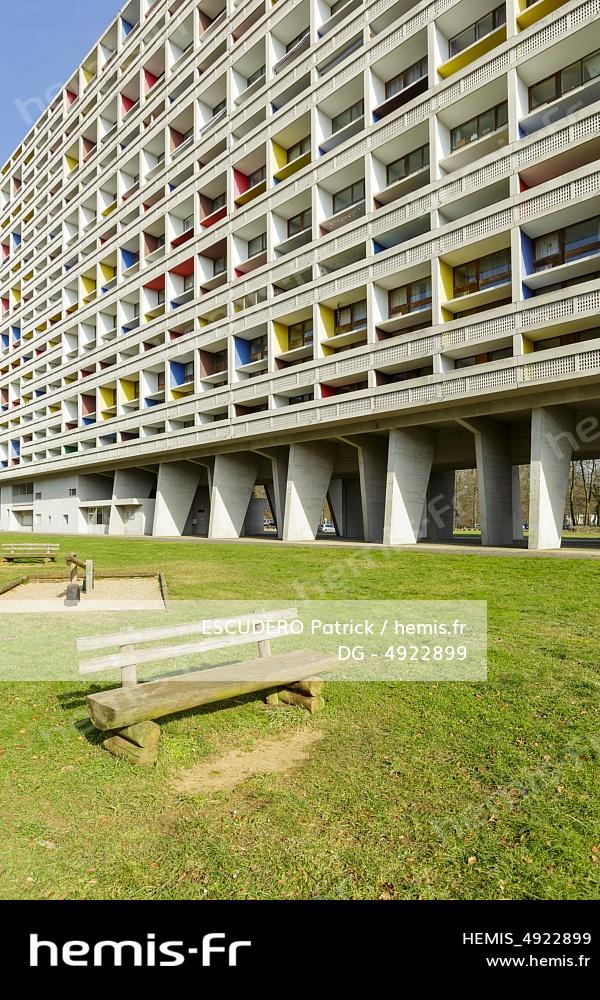France, Meurthe-et-Moselle (54), Briey, l'Unité d'habitation de Briey appelée aussi Cité Radieuse de Briey-en-Forêt est une unité d'habitation construite entre 1959 et 1961 par l'architecte franco-suisse Le Corbusier selon le modèle établi pour Marseille et Rezé, l'aire de jeux et la façade