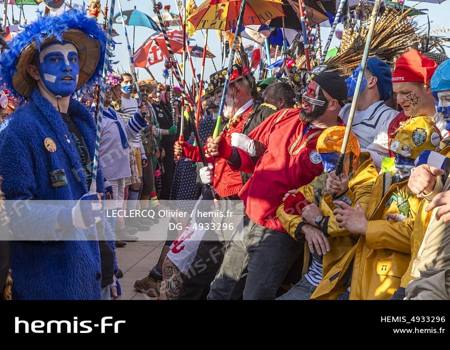 France, Nord, Dunkerque, Malo les bains, Carnival of Dunkerque, carnavaleux band doing a stop heckling and jostling