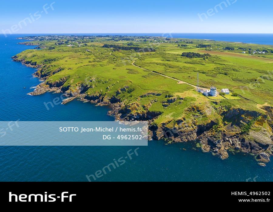 France, Morbihan, Groix Island, the north of the island, seen from the sky, above the Beg-Melen semaphore (aerial view)