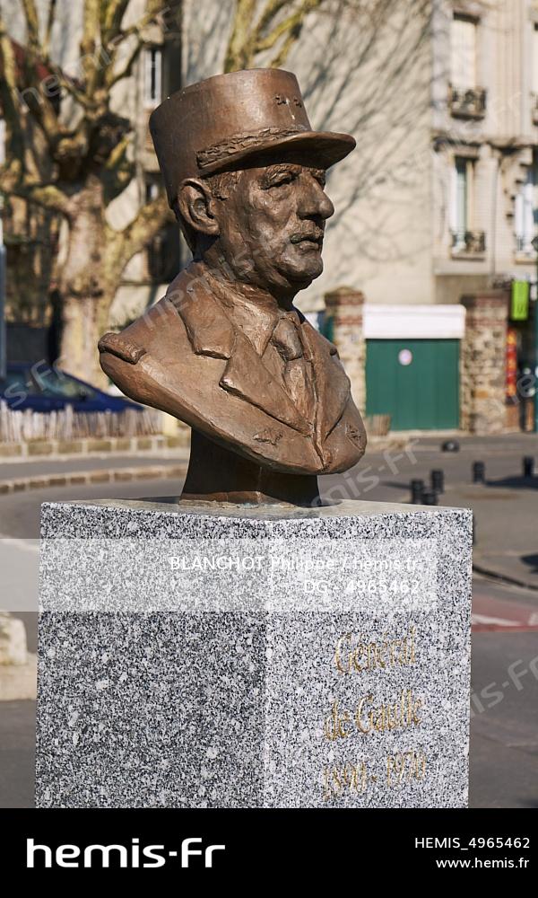 France, Seine-Saint-Denis (93), Épinay-sur-Seine, Buste du général de Gaulle par le sculpteur Sébastien Langloÿs