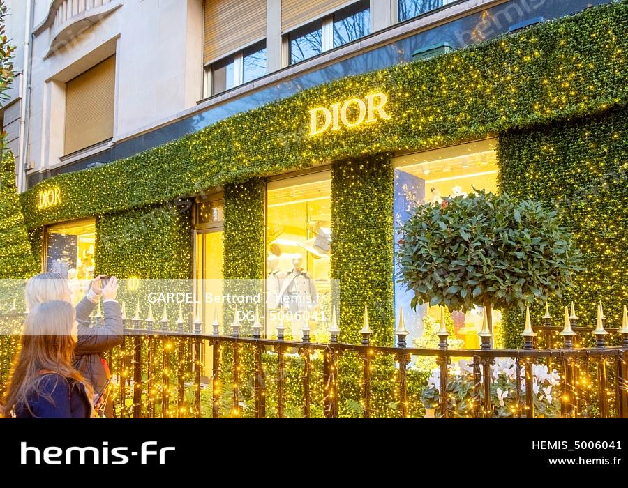 France, Paris (75), l'avenue Montaigne pendant les fêtes de Noël, la boutique Dior couture