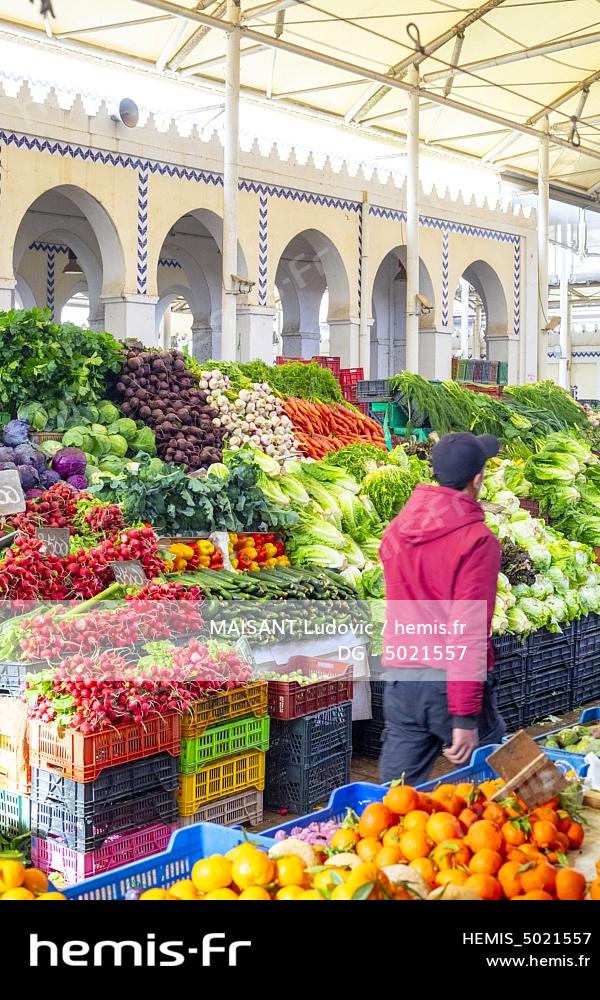 Tunisia, Tunis, Charles de Gaulle Street, central market dating from the late 19th century, vegetable vendor