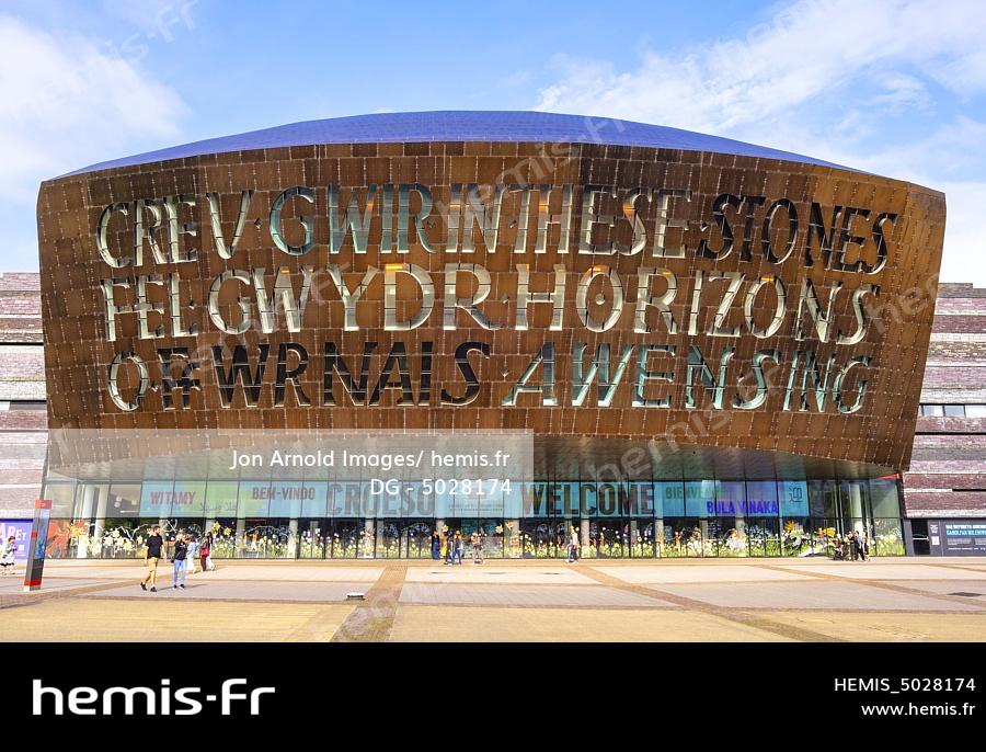 The copper dome of Wales Millennium Center, national arts centre located in the Cardiff Bay area of Cardiff, Wales