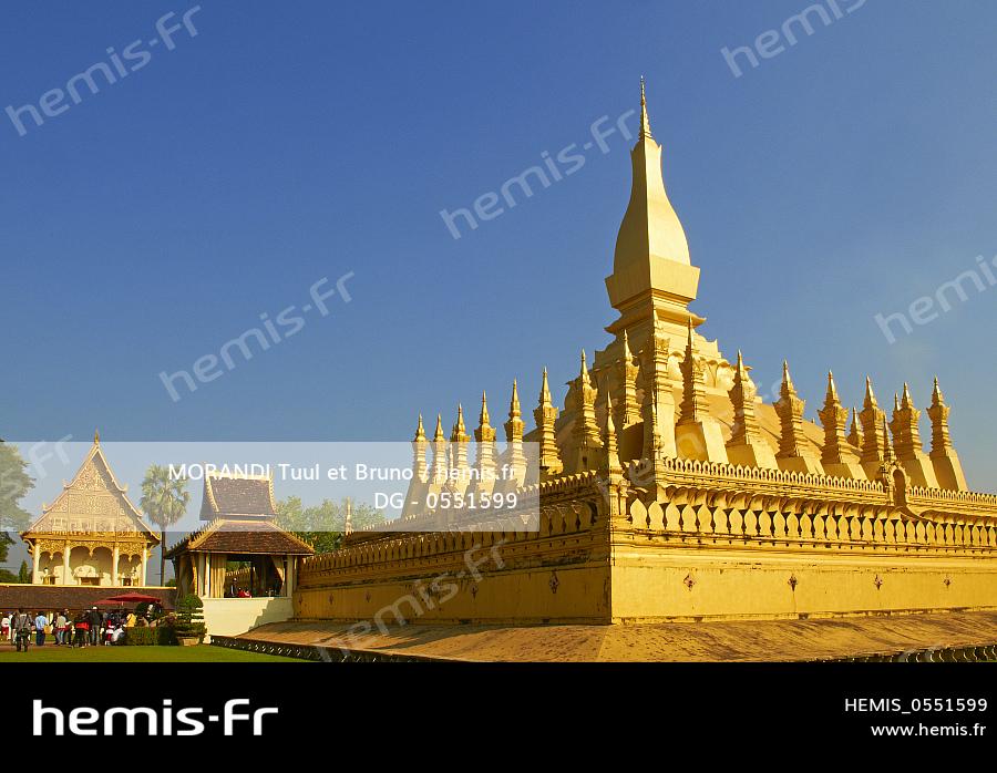 Laos, Vientiane, Pha That Luang temple, big stupa, symbol of the Laos sovereignty, buddhist religion and the city of Vientiane
