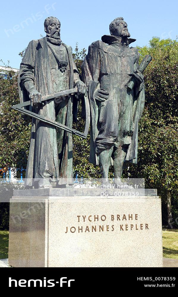République Tchèque, Prague, statue de Tycho Brahe et Johannes Kepler, deux astrophysiciens mondialement connus
