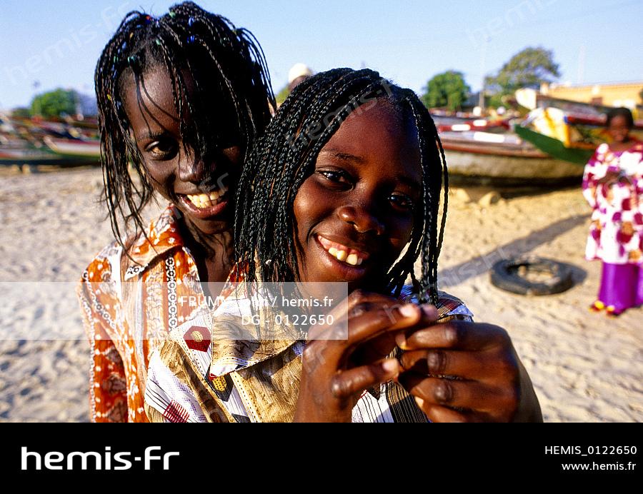 Senegal, Lebou tribe young girls on a beach of Dakar