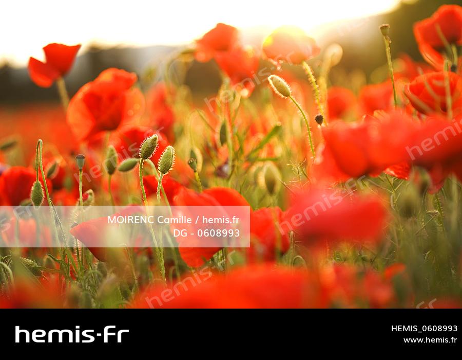 France, Vaucluse, Luberon, near Lourmarin, poppies field