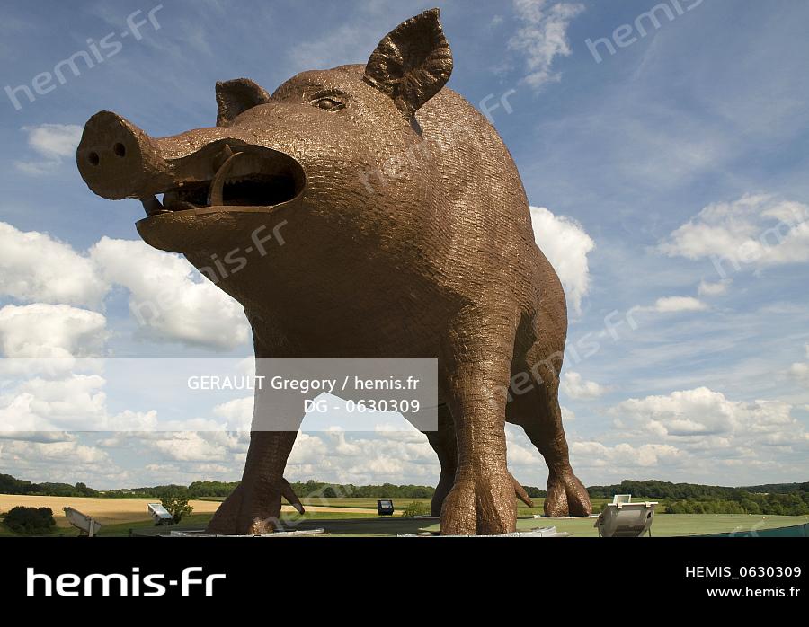 France, Ardennes, Saulces Monclin, Woinic is the biggest wild boar of the world, the symbol of the Ardennes, 10 meters high, 14 meters long, 5 meters wide