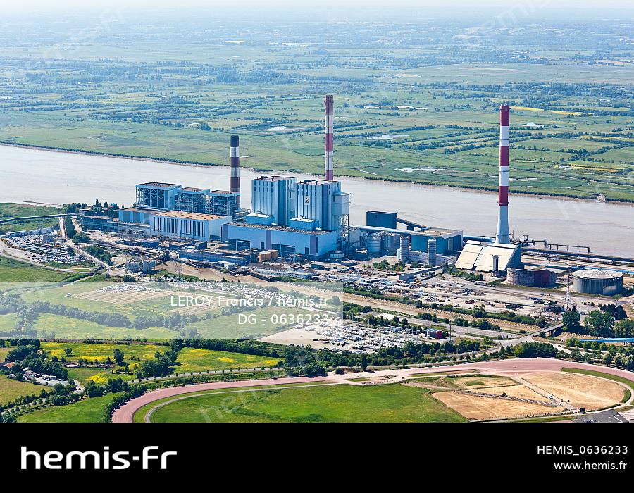 France, Loire-Atlantique, Cordemais, Thermal power plant near the Loire river (aerial view)