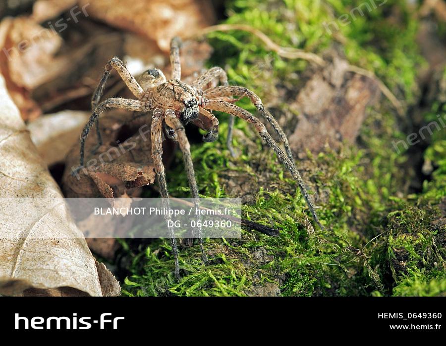France, Araneae, Zoropsidae, Mediterranean wandering wolf spider or Garage spider (Zoropsis spinimana)