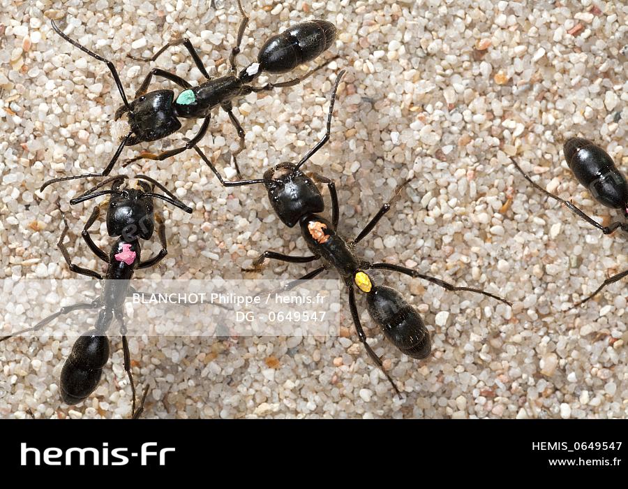 Brazil, Hymenoptera, Formicidae, Ponerinae, Giant hunting Ant (Dinoponera quadriceps), color marking of dominant individuals of the colony