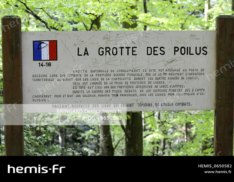 France, Meurthe et Moselle, Col de la Chapelotte, Badonviller, panel, the Hairy Cave, Rock sandstone, cave dwelling, first aid during the 1914 18 war, heavy fighting in 1915