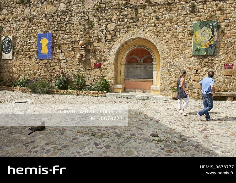 France, Alpes Maritimes, Coaraze, labelled Les Plus Beaux Villages de France (The Most Beautiful Villages of France), traditional architecture, the place to sundials