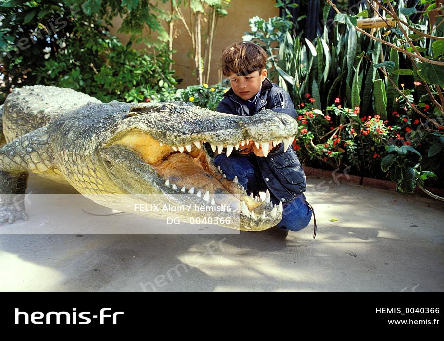 France, Drome, Drome Provencale, Pierrelatte, La Ferme aux crocodiles (Crocodile Farm), a stuffed crocodile