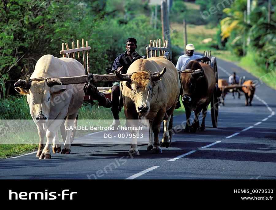 France, Guadeloupe, île de Marie-Galante, cabrouet, char à boeufs pour porter la canne à sucre