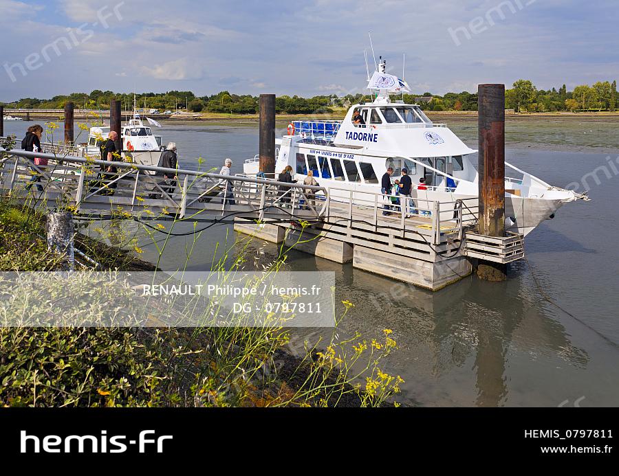 France, Morbihan, Golfe du Morbihan, Vannes, the boat terminal, departure of a small cruise ship