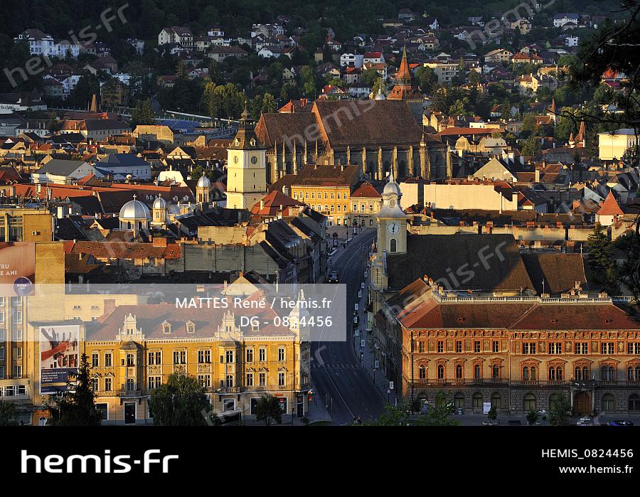 Romania, Transylvania, Brasov, casa Sfatului (council house) and Biserica Neagra (the black church)