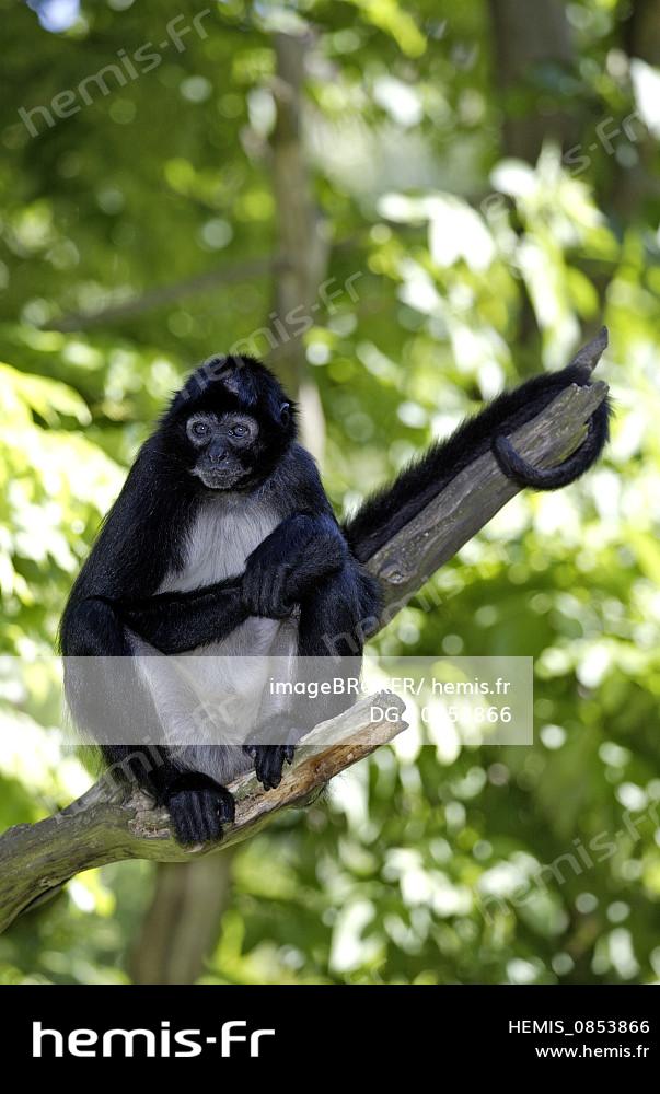 Singe-araignée à la main noire ou Geoffroy (Ateles geoffroyi) assis sur une branche, Roatan, Honduras, Amérique centrale