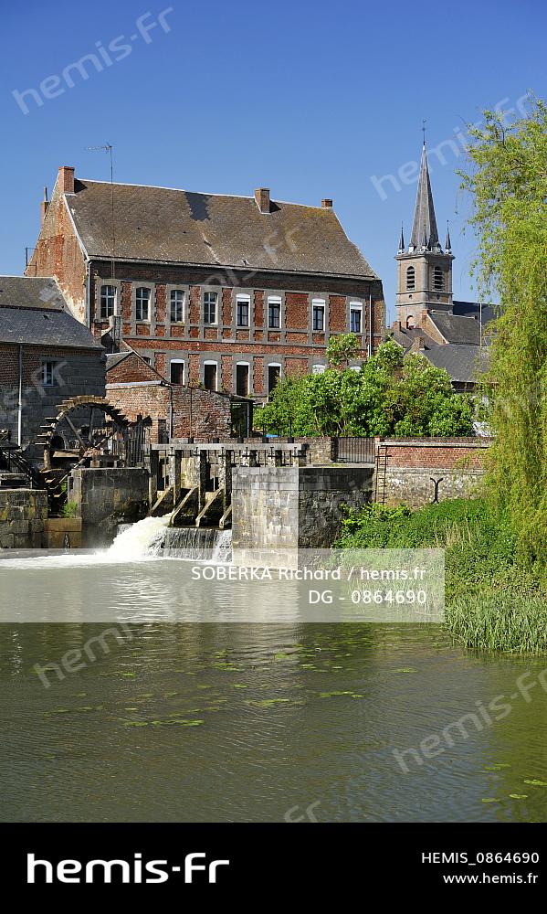 France, Nord, Maroilles, Abbey Mill built in the 17th century and the Minor Helpe river