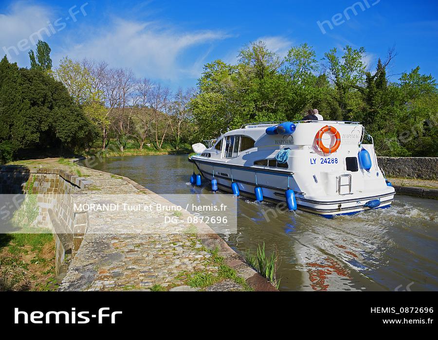France, Aude, Paraza, Canal du Midi listed as World Heritage by UNESCO, the navigable aqueduct of Repudre, the first built in France