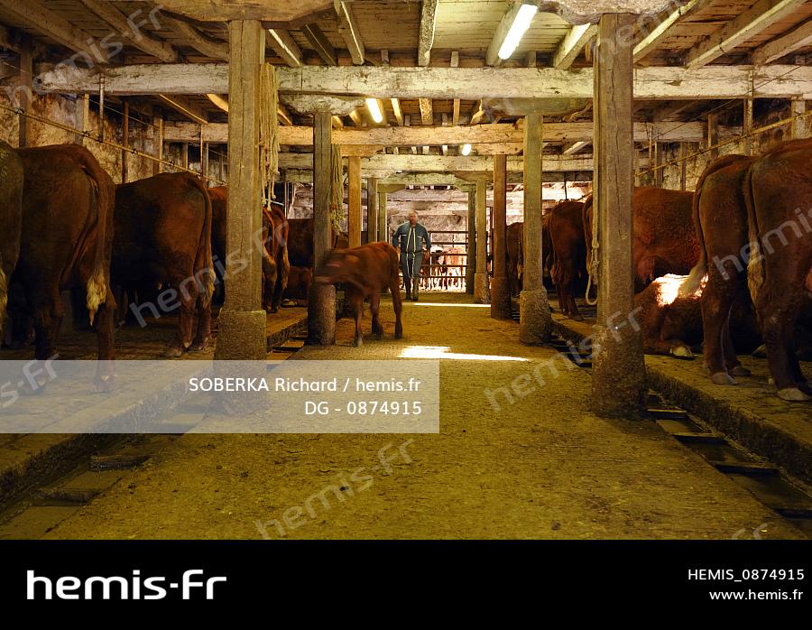 France, Cantal (15), Vic-sur-Cère, ferme Salvaroque élevant des vaches Salers