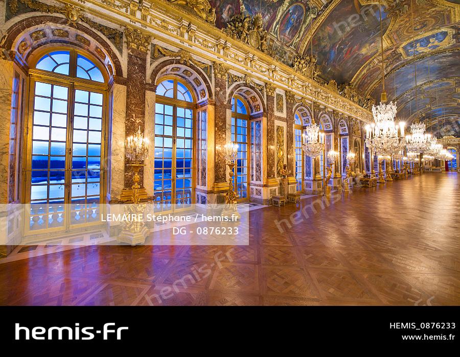 France, Yvelines (78), château de Versailles, classé Patrimoine Mondial de l'UNESCO, Galerie des Glaces (longueur 73m et largeur 10,50m) avec 17 fenêtres et 357 miroirs, architecte Jules Hardouin-Mansart (1678 - 1684)