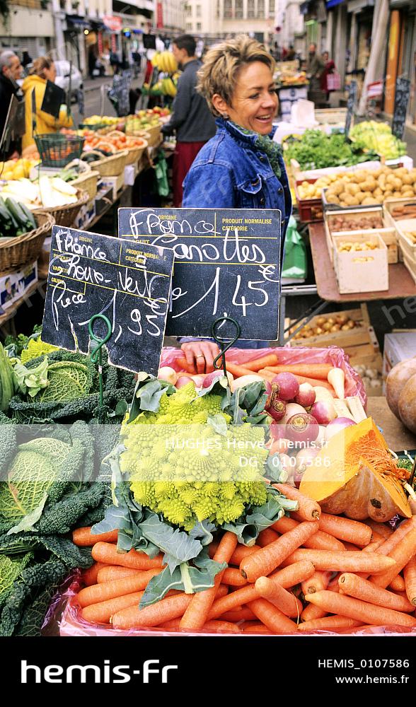 France, Paris (75), étal de légumes sur le marché d'Aligre